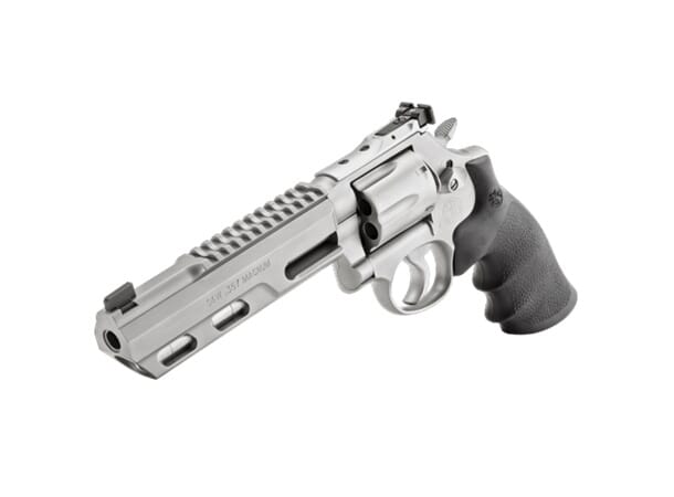686 Competitor er tunet på Smith & Wessons Performance Center og klar rett ut av boksen for å vinne konkurranser. Competitors avtrekk er tunet, den har en bredere avtrekker for bedre følelse og kontroll. Pipen er fra Performance Center og er vektet med utskiftbare lodd for at du skal kunne justere balanse og vekt som det passer deg. Lette polymer ringer følger med for å erstatte stållodd som sitter i originalt. Siktene er justerbare fra LPA og i pipen er det frest inn en picatinny-rail for montering av rødpunktsikte. 6 tommer pipe, 6 skudds tønne, Hogue grep.